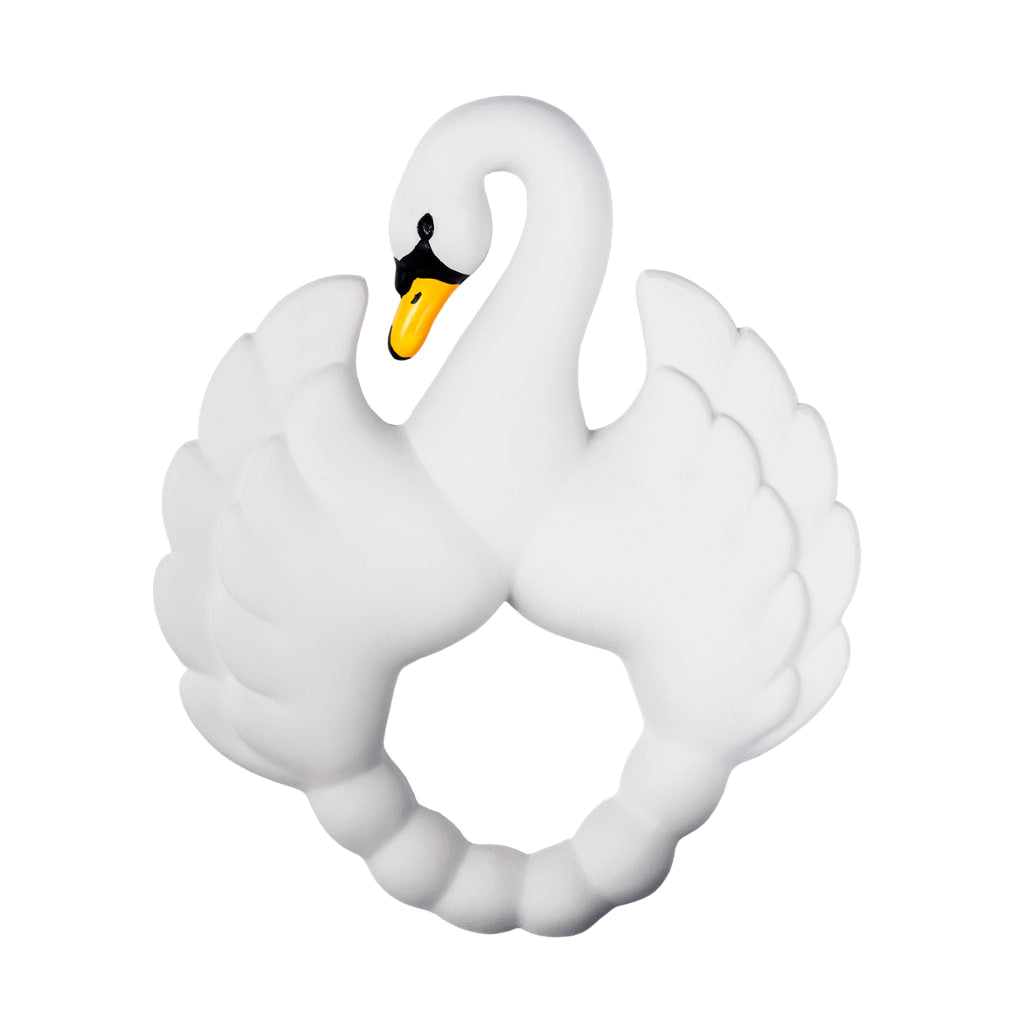 Svane bidering. Fremstillet i naturgummi. CE testet efter Europæisk standard EN71. Kan bruges fra 0+ år. Rengøres i mildt sæbevand og klud. Brug ikke kemikalier. Opbevar emaballagen for fremtidig reference.